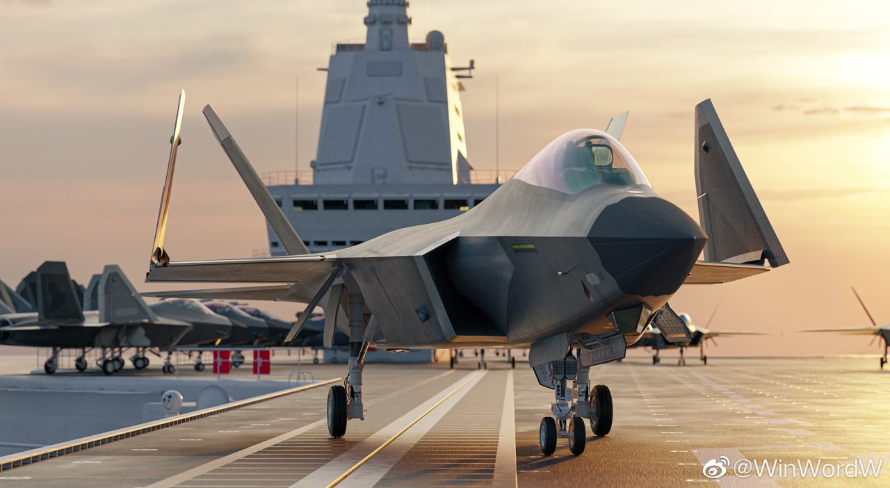 New renders of the third Chinese aircraft carrier under construction at the Hudong-Zhonghua Shipyard of the Hudong-Zhonghua Shipbuilding Group (part of the Shanghai Shipbuilding Company of the Chinese state shipbuilding corporation China Shipbuilding State Corporation – CSSC) in Shanghai and the new Chinese carrier-based fighter (designation J- 35) developed by the China State Aviation Industry Corporation (AVIC). The prototype is promised to be rolled out at the end of this year.