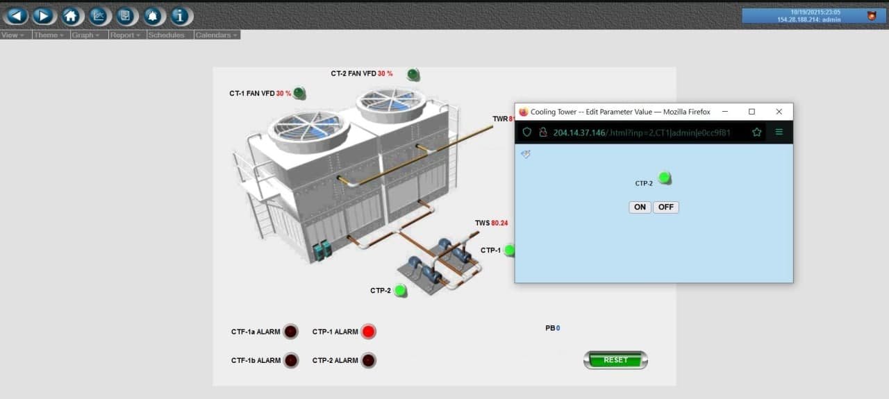 Intrusion into all industrial tower control systems with full control and change of temperature, energy and weather, ventilation, alarms and alarms, ducts, motors and shutdown of physical equipment and systems