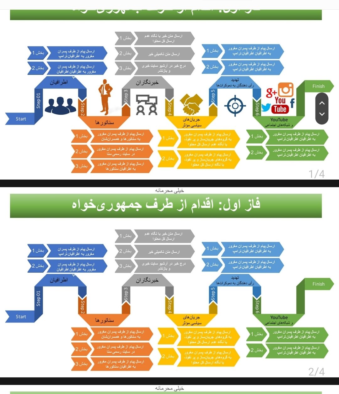 - بارگذاری فیلمهای جعلی در یوتیوب اما متن این پیامها چه بود؟ چه سناریوی شومی را خامنه ای و تروریستهای سپاه سایبریش طرح ریزی کردند؟
