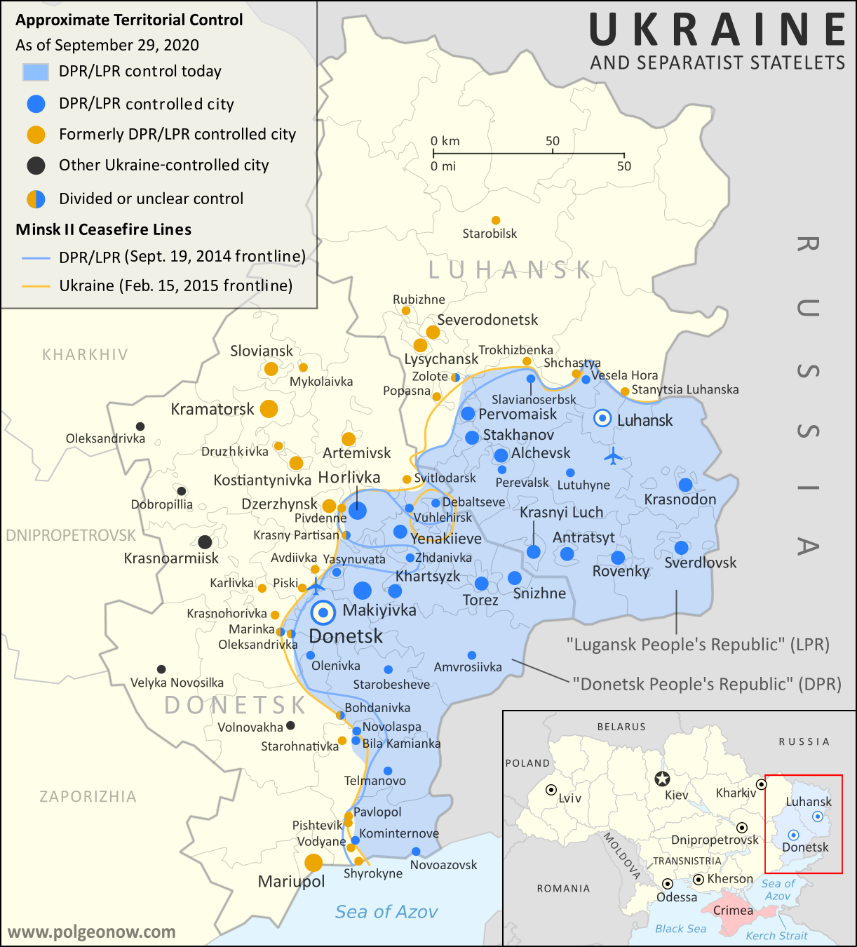 In violation of the Minsk Memorandum, Russian troops and Russia-backed illegal armed formations seized 8 pieces of land 1696 km² in area, which had to be on the Ukrainian government-controlled territory according to the line of contact, defined by the Memorandum.