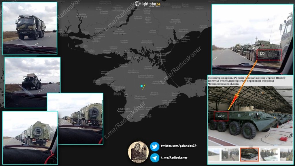 The 126th Separate Coastal Defense Brigade of the RF Armed Forces was spotted marching on the Sevastopol-Dzhankoy highway section towards the border with Ukraine