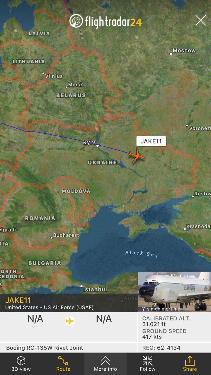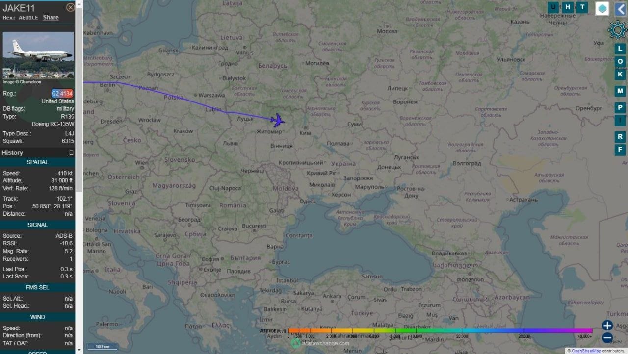 For the time in the history of the Russia – Ukraine conflict, One USAF RC135W Rivet Joint entered Ukraine airspace & Surveilled the Frontlines of Donbass & the Russian border.