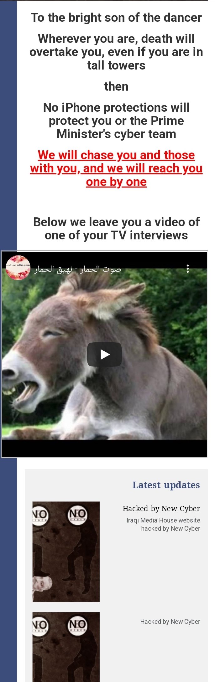 The “Iraqi Media House” website, and this hack came in response to the false and fabricated accusations against the team.
