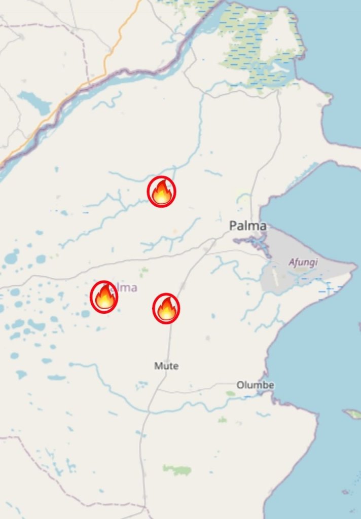A local source confirmed the outbreak of large fires in the Palma region in the last 24 hours, which may reflect attacks or clashes on the ground, attributed to IS militants (ISCAP) and the Mozambican army.