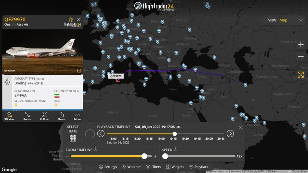 The Boeing 747 with EP-FAA registration first flew to Algeria and then refueled to Venezuela.