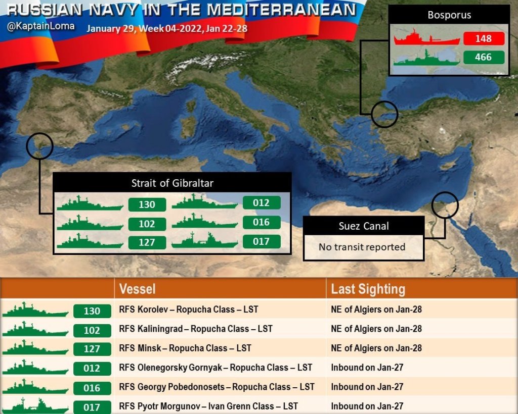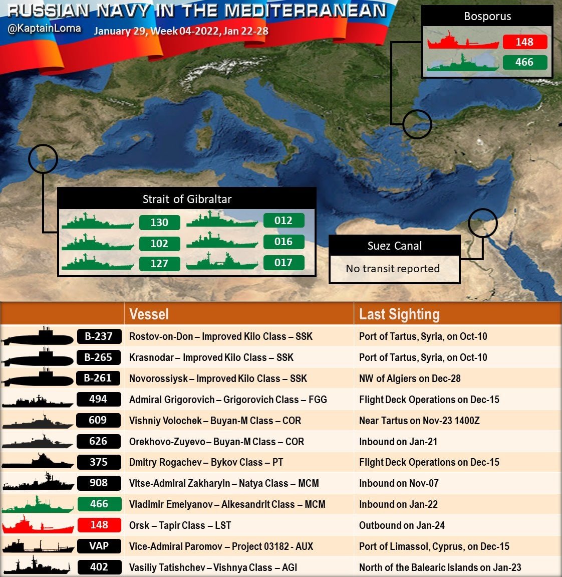 A regularly updated list of ships and submarines of the Russian Navy in the Mediterranean. January 29, 2022 Version