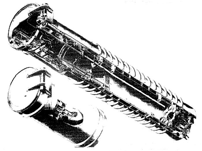 Launcher SM-225A (project 949 – SM-225) – inclined (45 degrees) launcher developed by Design Bureau of Special Engineering (KBSM) for SSGN pr.949 and pr.949A. Start “wet” – PU is filled with water before the start to reduce thermal loads on the PU and the carrier and equalize the pressure. The PU consisted of a body and a launch cup with a rocket, cushioning means were placed between the PU body and the launch cup, guides were located inside the launch cup. The rubber-cord connection prevented the impact of water on the shock absorbers. During start-up and during loading and unloading operations, the glass was fixed. During the crash on the Kursk SSGN, the missiles did not receive significant damage in the launcher.