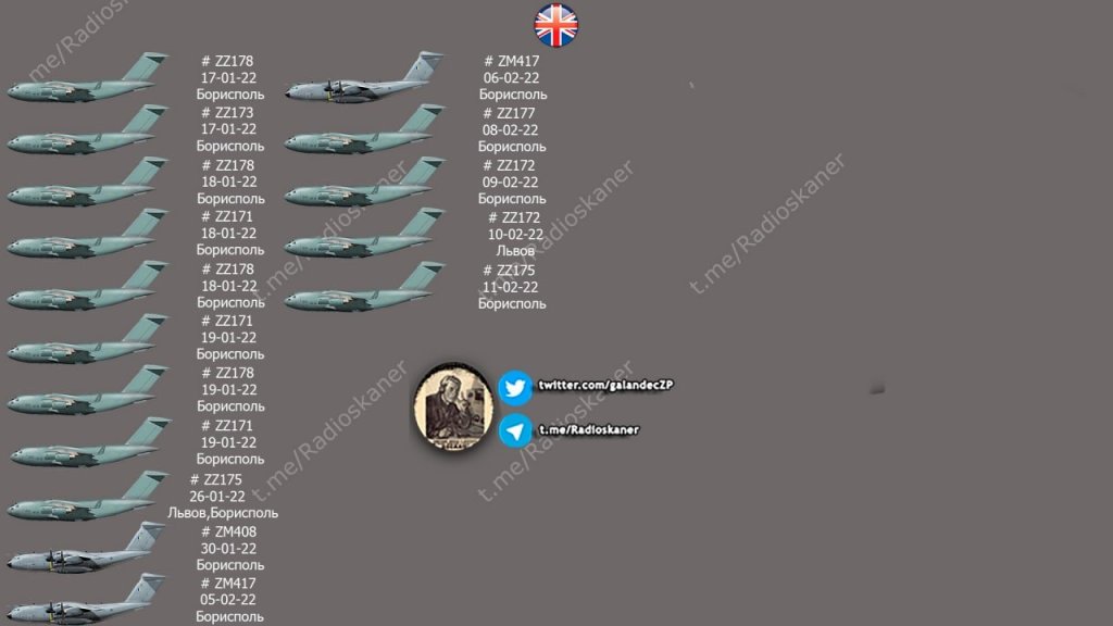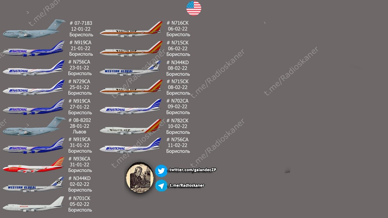 Updated infographic of the delivery of military cargo from the US and NATO countries to Ukraine in 2022 as of February 12, 2022.