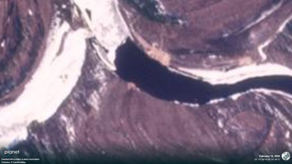Satellite images show that the Russians in a strange move and during one day built a temporary bridge by their combat engineering units on an area of the Great Pripyat River in Belarus, which is less than 10 km from the Ukrainian border.