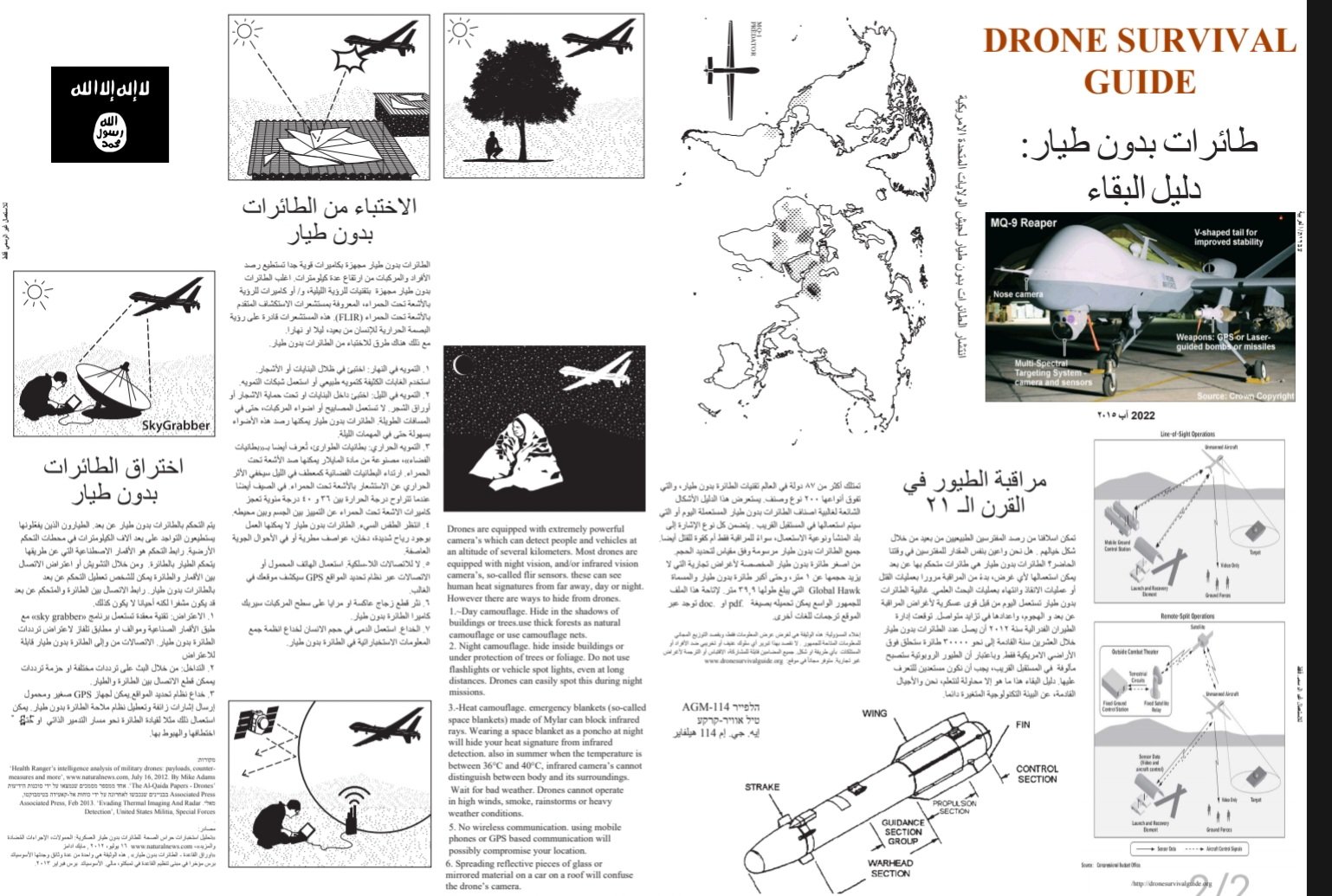 ISIS was able to secure a highly sought after document detailing how to identify drones. The document (below), circulating on #Daesh social media channels and groups clearly puts the drones at risk of destruction. The perpetrators translated the artifact to Arabic, proudly distributing the stolen material.