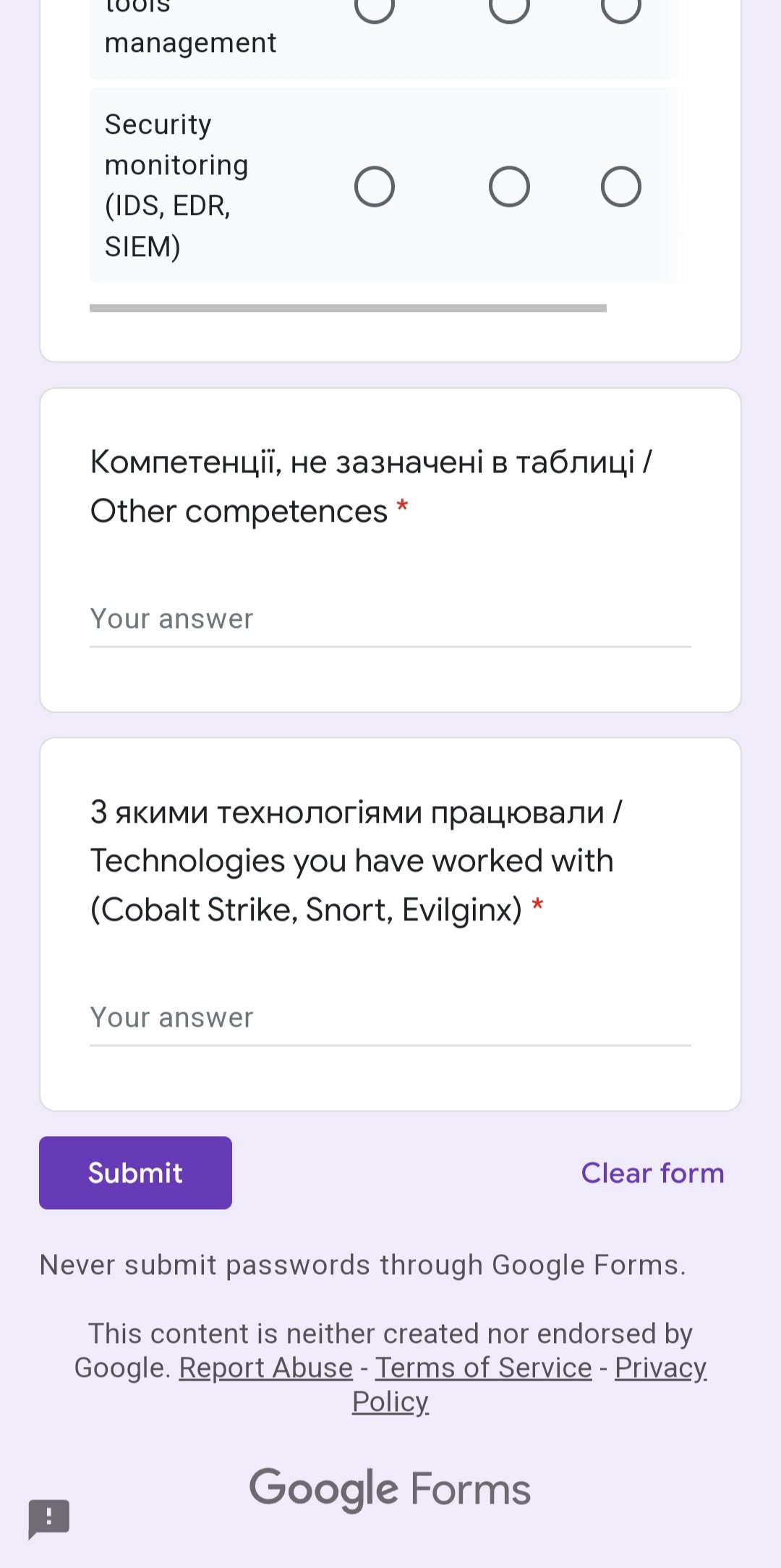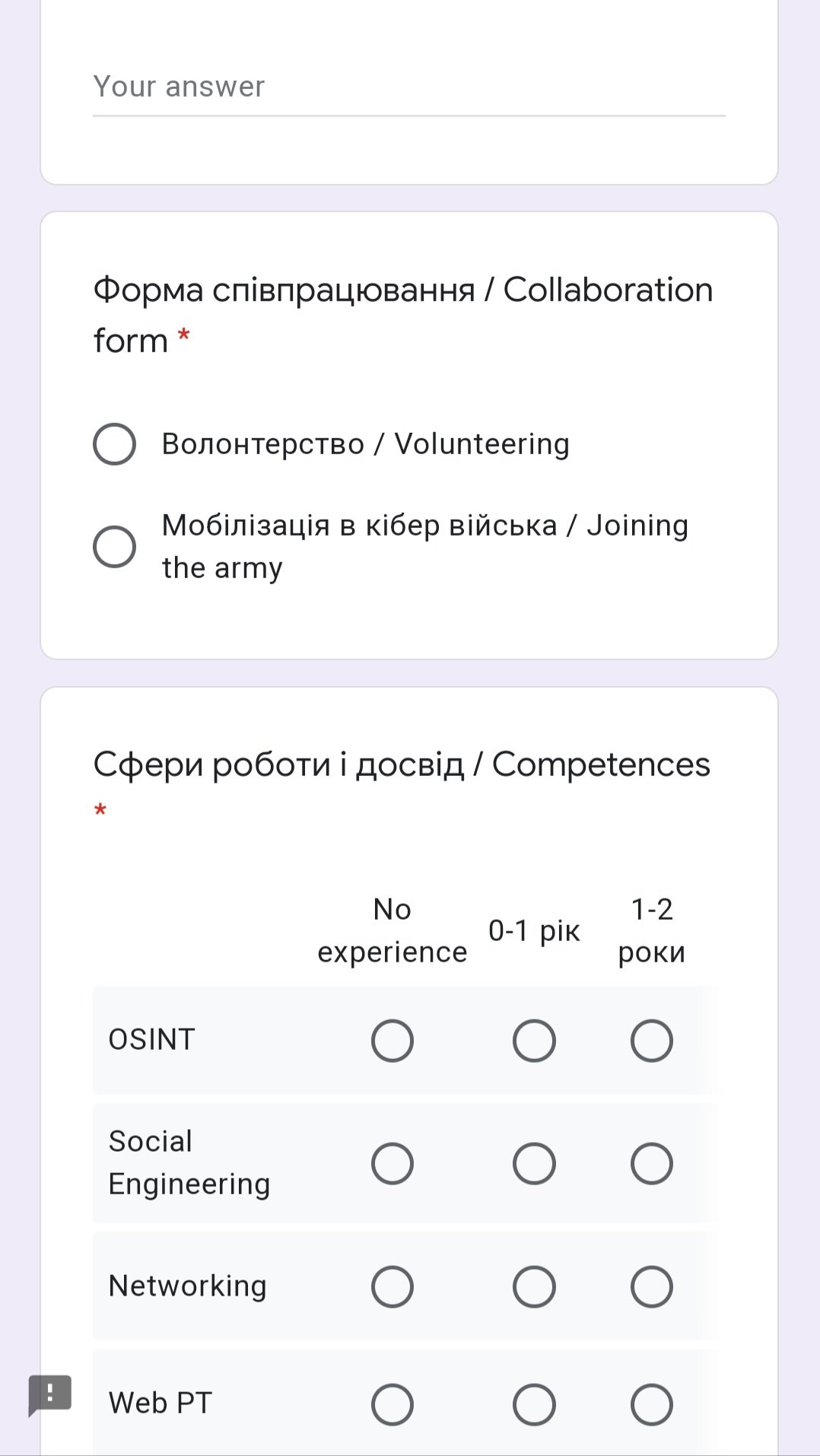 The messages sent by the Ukrainian military contain an offer to take part in the cyber war, but on the side of Ukraine. At the same time, hackers who are ready to go to the virtual front must send a special statement to the Ukrainian authorities, implemented in the form of a regular Google Docs form. In it, they need to indicate their “specialization”, that is, what they do on the Internet. For example, they may indicate that they are developing malware