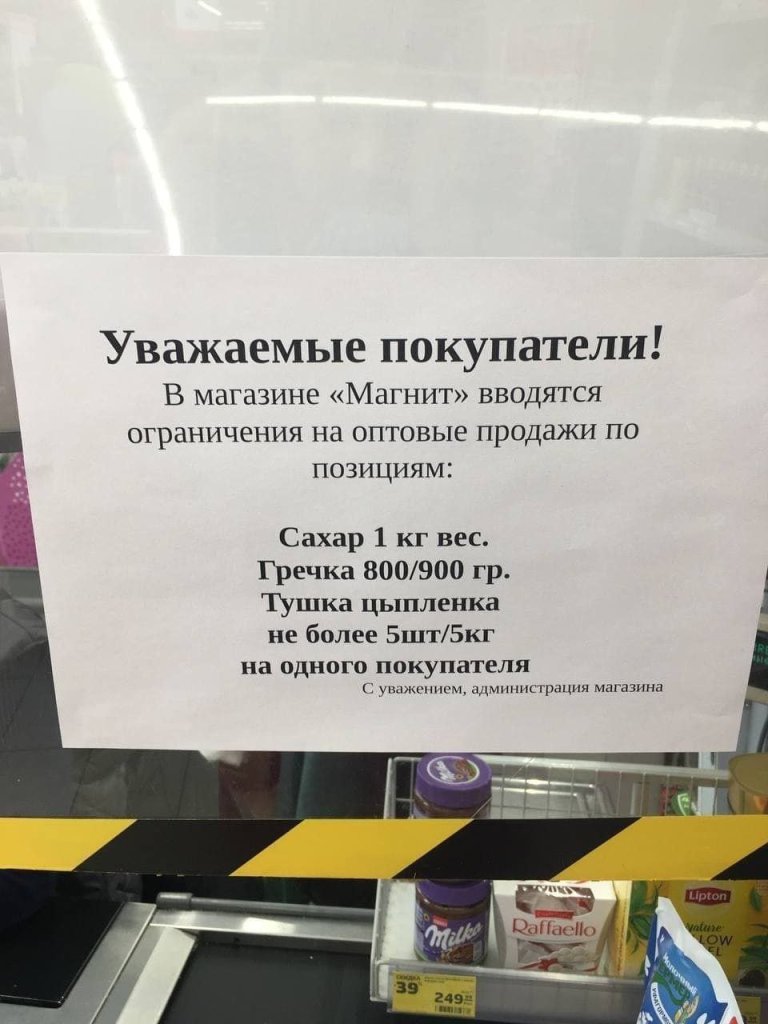 In Russia, they are afraid of a food shortage, so these announcements are starting to appear.