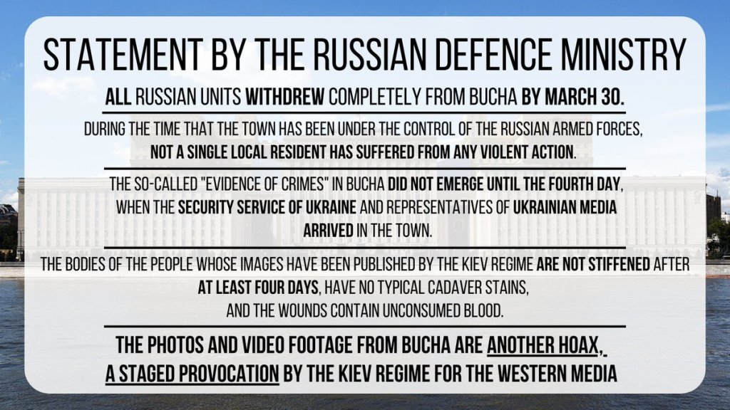 ❗️We would like to emphasise that all Russian units withdrew completely from Bucha as early as March 30, the day after the Russia-Ukraine face-to-face round of talks in Turkey.