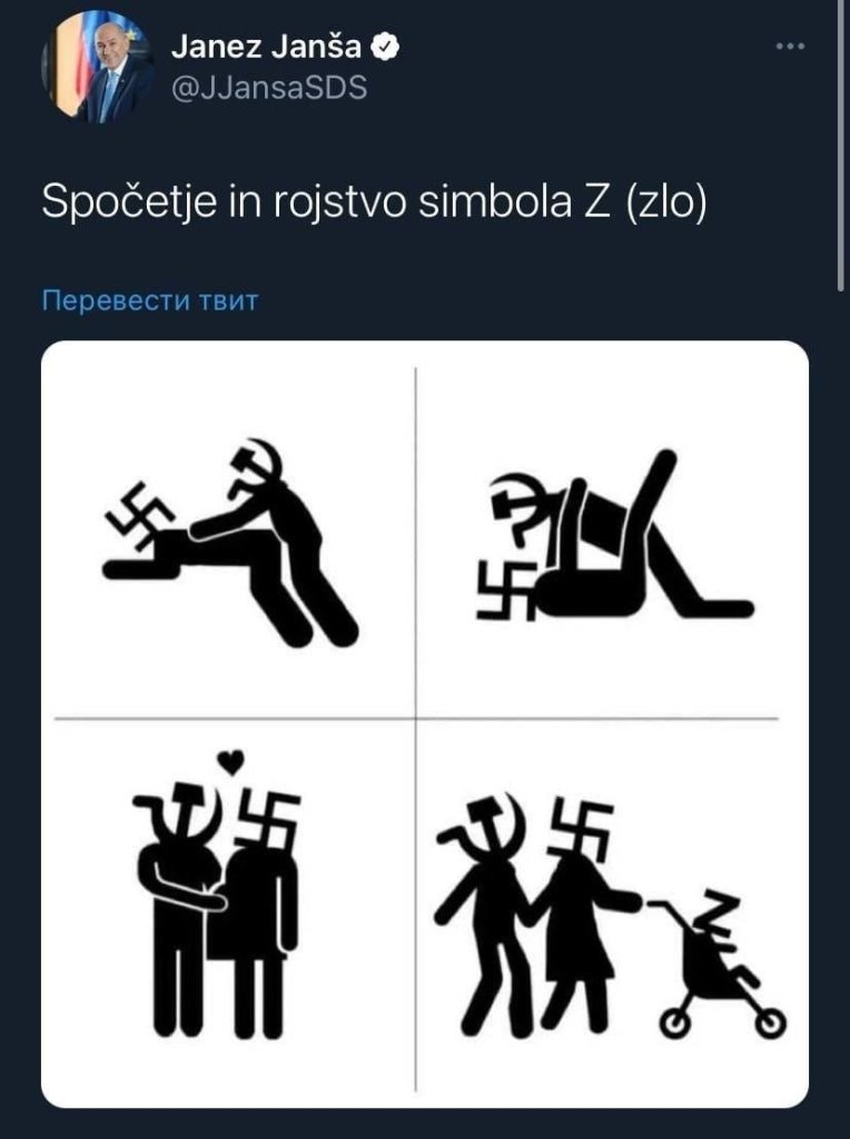 The Prime Minister of Slovenia, Janez Janša, responded by posting such a tweet.