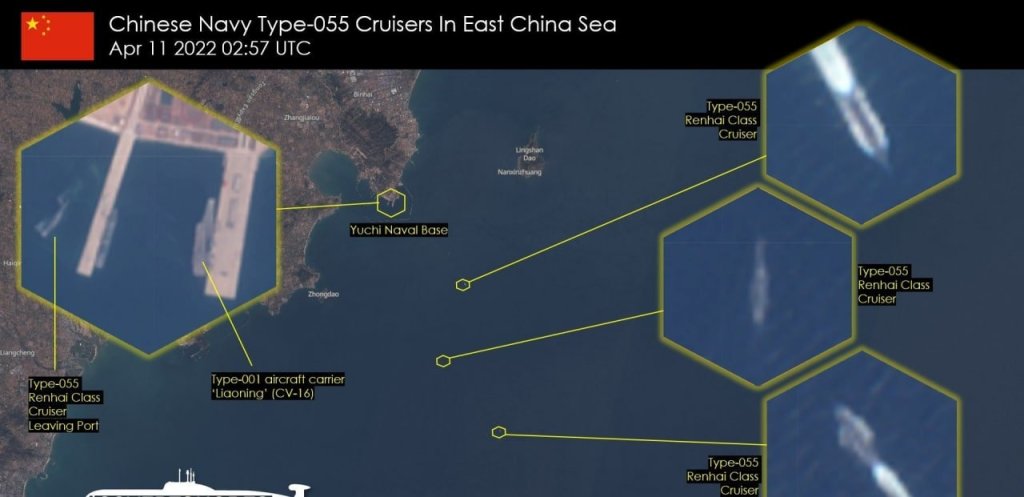 Combat training in the Yellow Sea of 3 destroyers URO “Nanchang”, “Anshan” and “Lhasa” Type 055 of the Northern Fleet of the PLA Navy. April 11, 2022