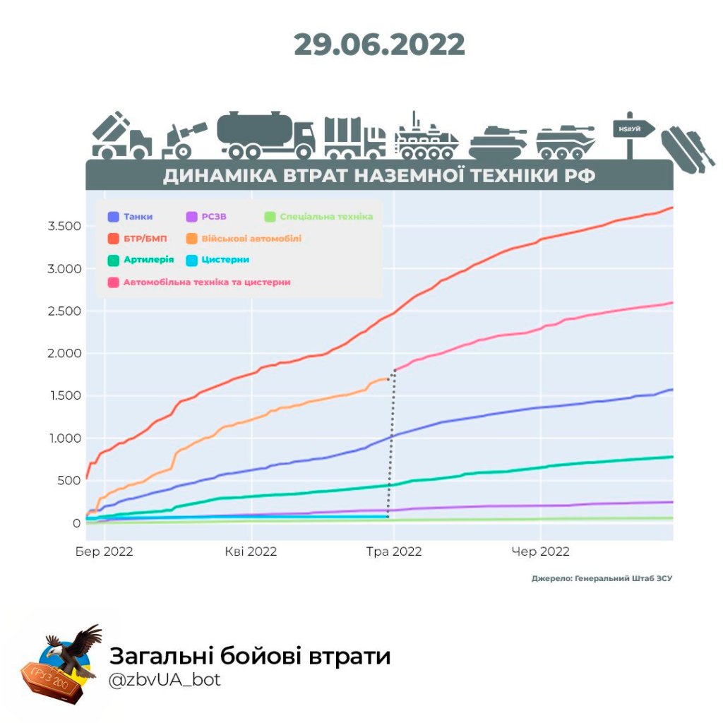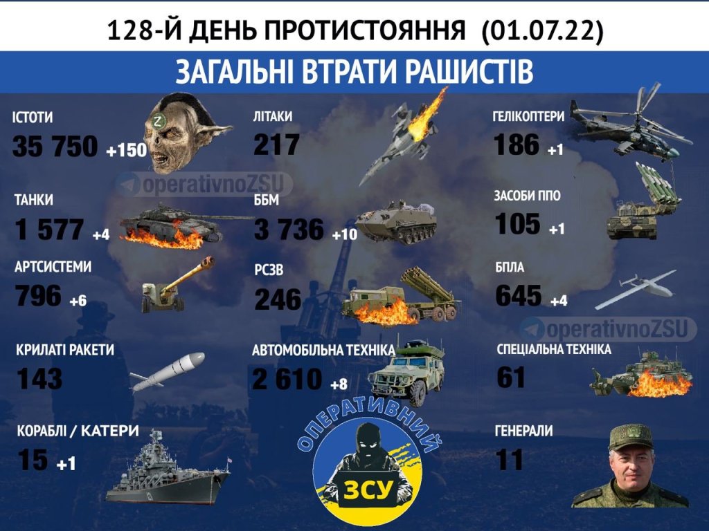 Percentage characteristics of Russia’s losses (July 1, 2022):