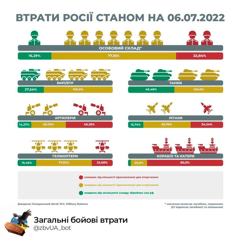 – 0.12% | daily percentage of destruction from the total composition of the armed forces of the Russian Federation (13,758 units)