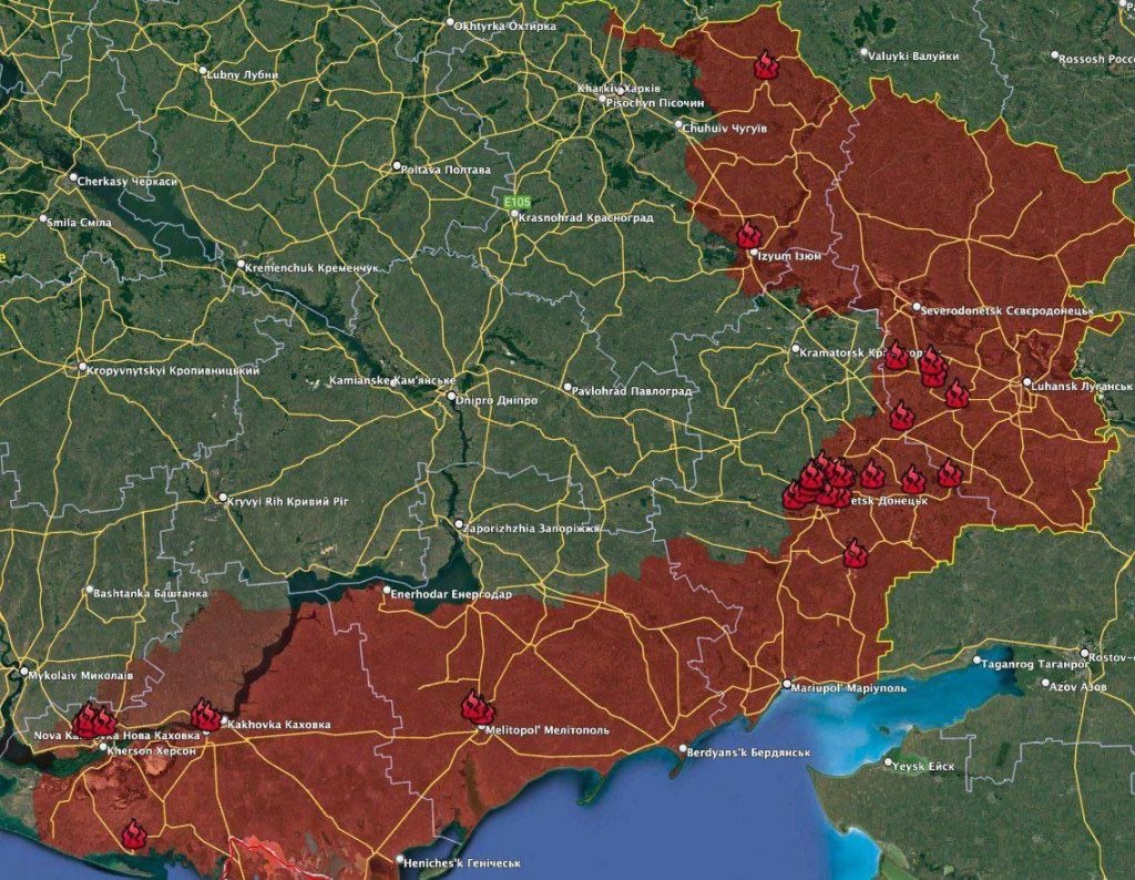Map of HIMARS strikes on enemy support facilities (warehouses, garages, barracks).