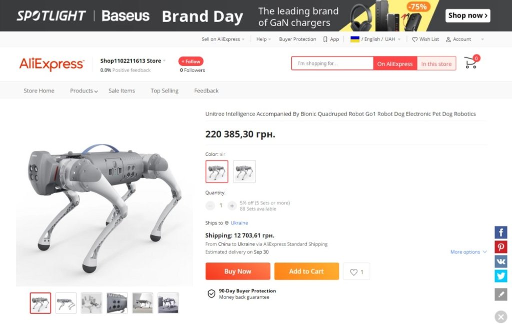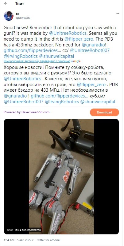 At the “Army 2022” exhibition, the Russians showed the supposedly newest development in which a billion of money was invested (sawed). The video shows the robot dog M-81, dressed in a ninja costume, armed with an RPG-26. It is funny that the same robot can be purchased on AliExpress for 5850 dollars. Descriptions of how to quickly disable such a robot also appeared on Twitter.