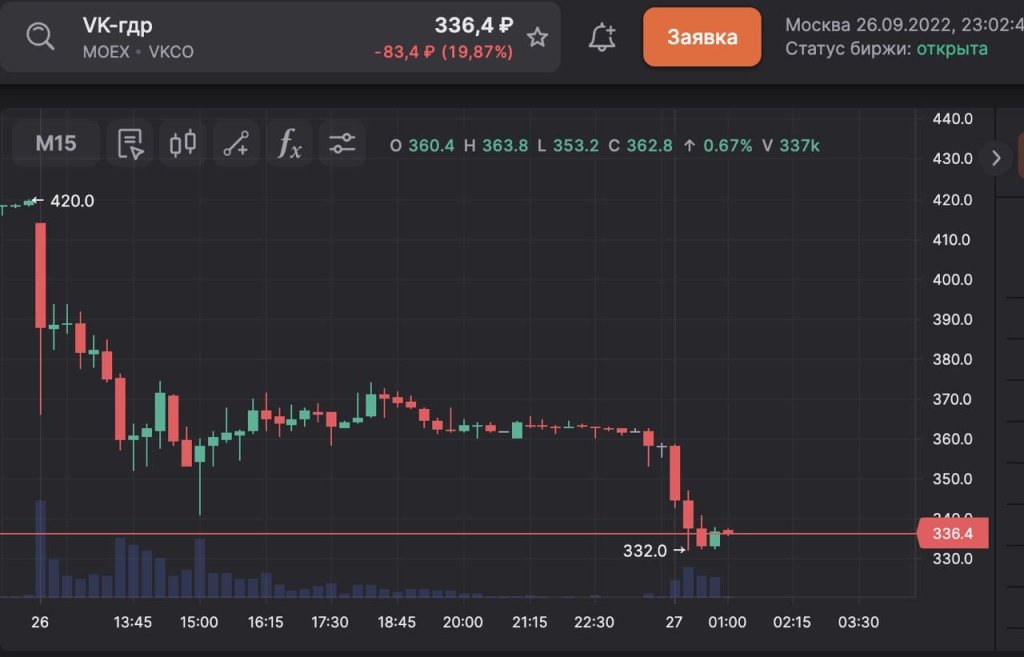 VK shares fell by almost 20% due to the removal of the holding’s products from the Apple Store.