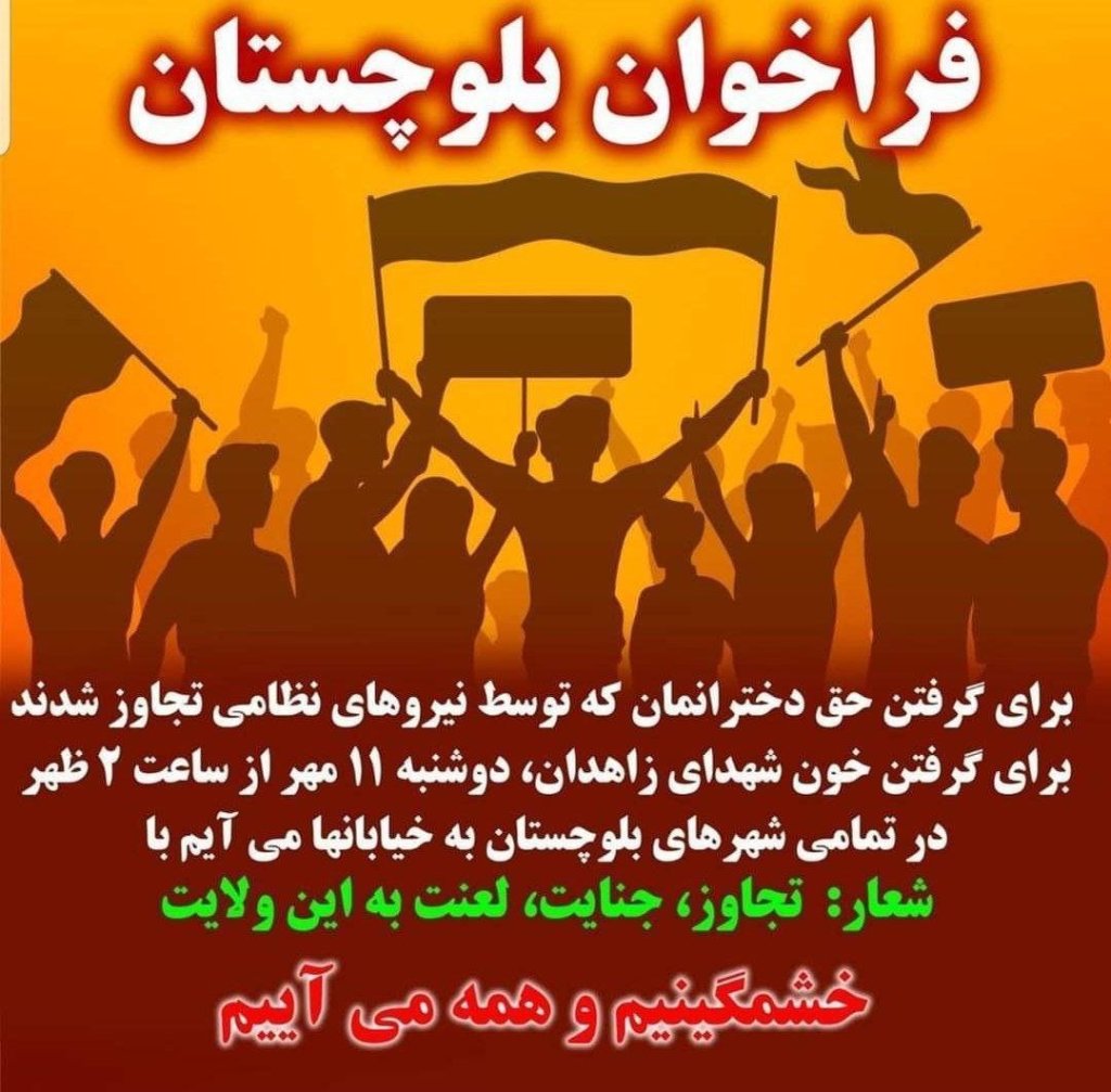 To get the rights of our daughters and to get the blood of martyrs of Zahedan, we will come to the streets on Monday 11 Mehr in all cities