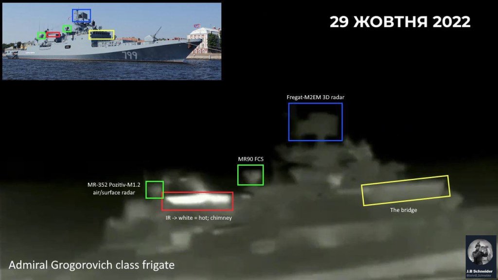 Ukrainian Uncrewed Surface Vessels (Drone boats filled with explosives) apparently managed to hit a Project 11356R frigate (presumably Admiral Makarov) & the Ivan Golubets Project 266M minesweeper.