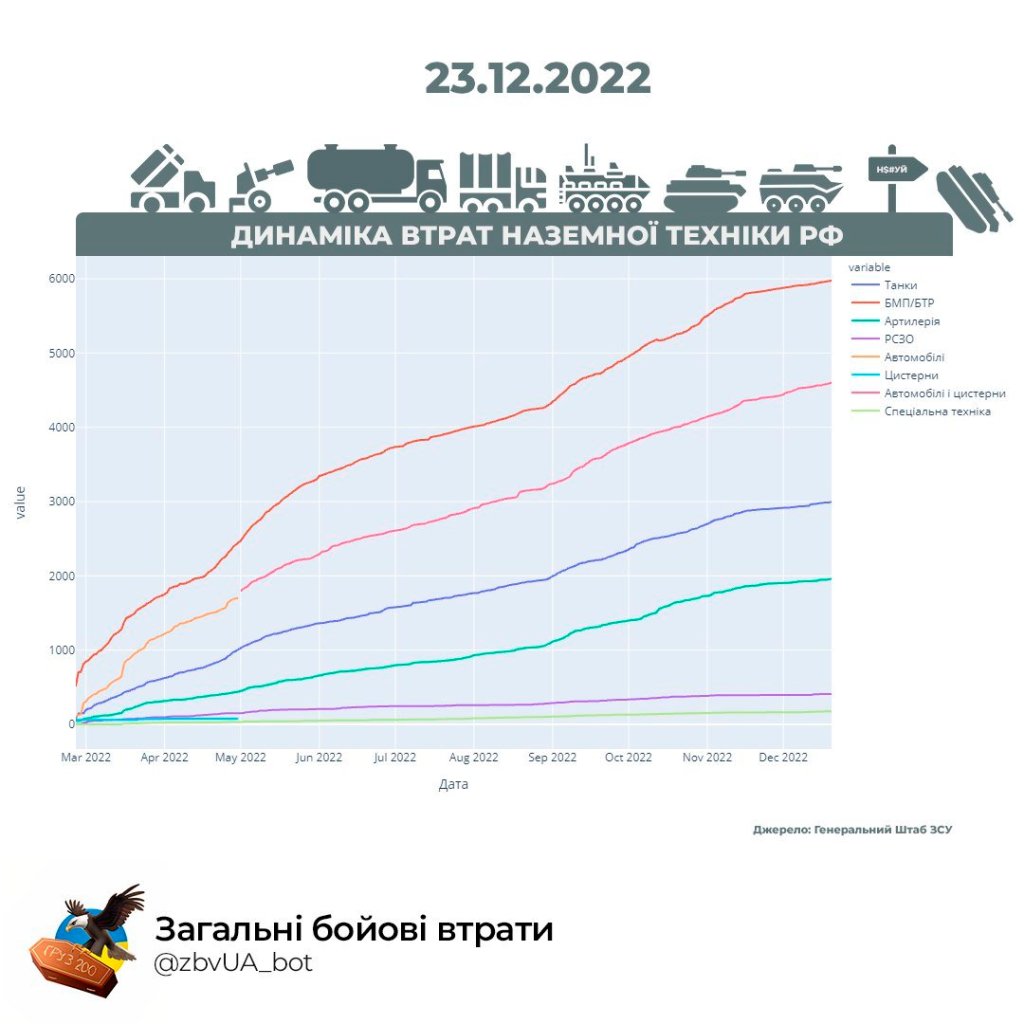 – 0.04% | daily percentage of destruction from the total composition of the armed forces of the Russian Federation (13,758 units)
