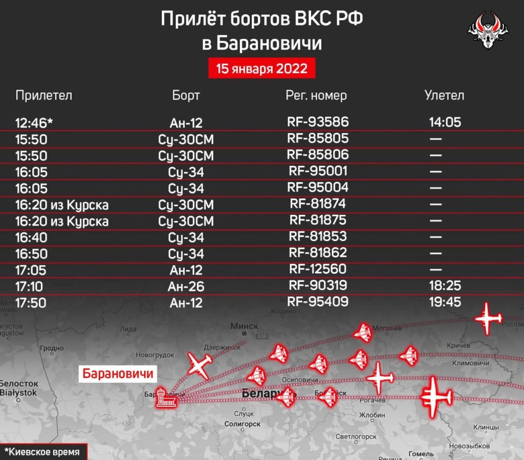 This is due to the start of air exercises in Belarus, which will be held from January 16 to February 1. Today 8 fighters and 4 cargo planes arrived in Belarus from the Russian Federation