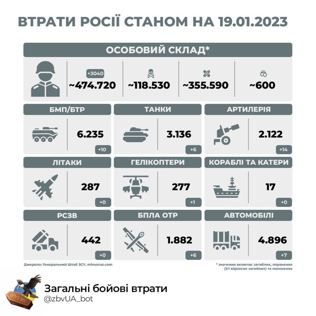 Percentage characteristics of Russia’s losses (January 19, 2023):