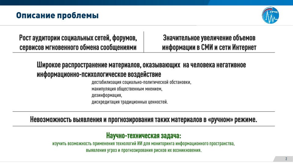 The information system for monitoring Internet resources (MIR) based on natural language processing (NLP) technologies should find prohibited information in texts. According to the developers’ plan, the system should be able to: