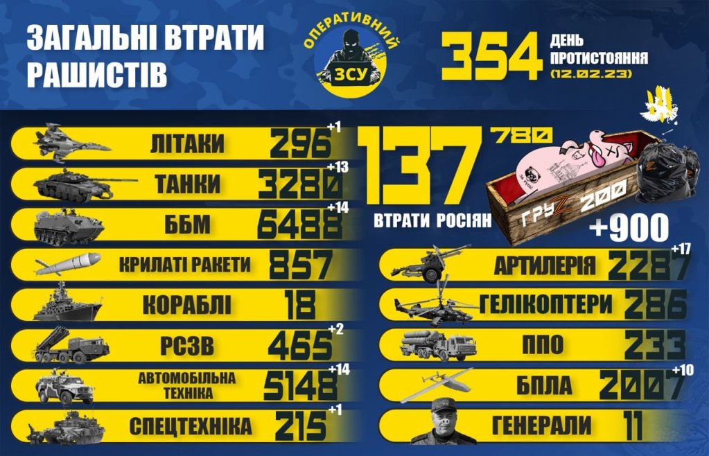 Russia’s losses as of February 12, 2023