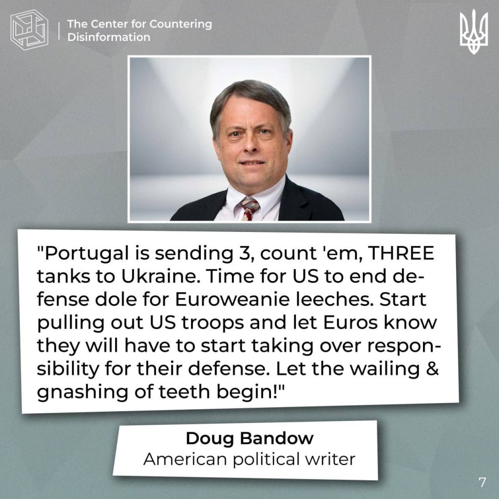 Promoting such rhetoric, the speakers are trying to encourage the West to stop helping Ukraine protect its population from russian aggression. In addition, they emphasize the «guilt» of the West, without mentioning the crimes and guilt of russia