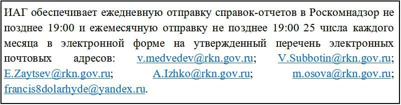 In addition, we note that preliminary calculations show that the volume of analyzed and described content, as well as the pool of sources on the basis of which reports will be built, will increase significantly relative to standard documents prepared before the start of the CBO, in connection with which we propose to abandon the description of accounts in social networks, materials from which will be used in reference reports. At the same time, we consider it expedient to leave a block with a description of all media and Internet sources that are not registered as media that generate negative attitudes towards the President of the Russian Federation.