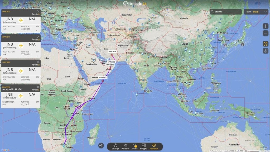On December 23, all aircraft abruptly changed registration from Guernsey to Burkina Faso (XT-ALM, XT-AKB, XT-AKK and XT-AHH) and, having indicated Uzbekistan as the final destination in the original flight plan , flew out of Johannesburg. And, once in Iranian airspace, the crews declared an emergency on board and “forced” landed in Tehran .