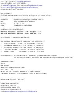 FROM : SAFIRAN AIRPORT SERVICES OPS ON BEHALF OF GAZPROMAVIA AVIATION COMPANY LTD