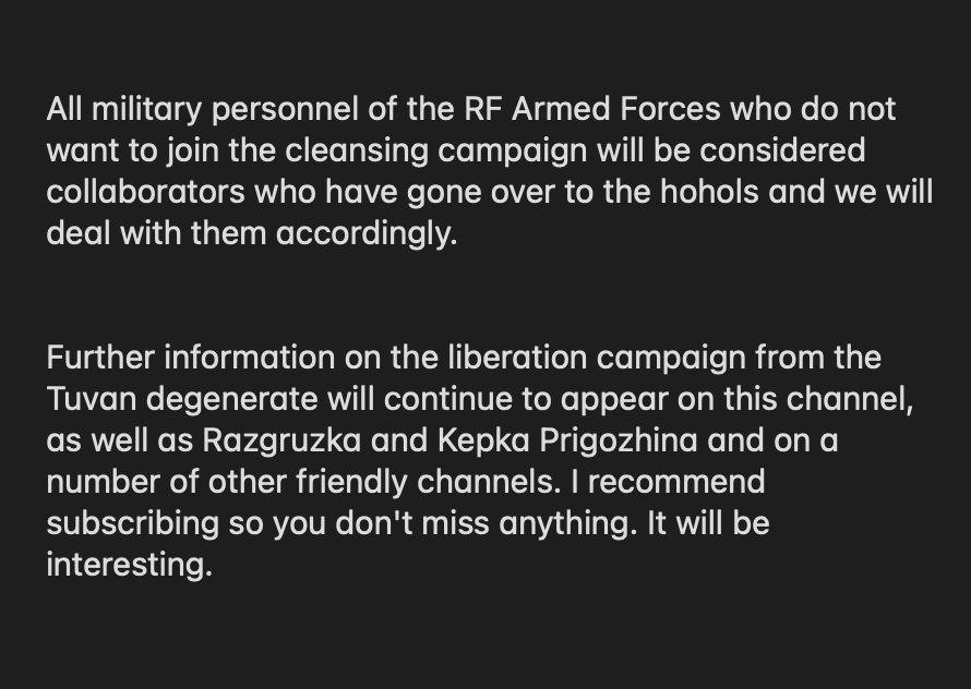 “Interesting events are unfolding in the vastness of our Motherland and they are very reminiscent of the troubled times of a hundred years ago. The stupid, corrupt and incompetent military-political elite of Putin’s Russia turns hundreds of thousands of men into mincemeat.