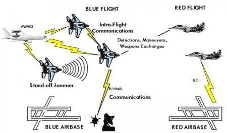 Digital Radio Frequency Memory (DRFM) Jamming), data link devices, sensor fusion systems, missile warning, and laser warning devices. Components can be modeled natively within BRAWLER, or a federate (such as Threat Modeling Analysis Program (TMAP) missile modules from the Intel Community (IC)), running in parallel. Ground Controlled Intercept (GCI), Airborne Warning and Control Systems (AWACS), Surface-to-Air Missile (SAM) sites, Surface-to-Surface Missiles (SSM), and stand-off jammers (SOF) are also modeled. BRAWLER is structured as an event-store simulation with a heavy use of stochastic models for most real-world systems. BRAWLER provides for effects-based electronic countermeasure (ECM) models and expendables.