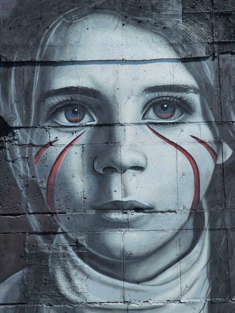 An Italian artist painted a portrait of a girl Nastya on a 9-storey building in Mariupol, behind whom Russian shells are falling