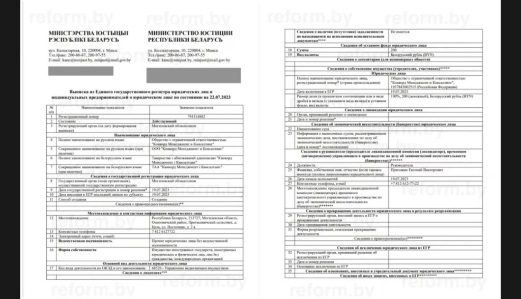 The Mogilev Regional Executive Committee has registered the company of the founder of Wagner PMC Yevgeny Prigozhin Concord Management and Consulting, Reform.by reports.