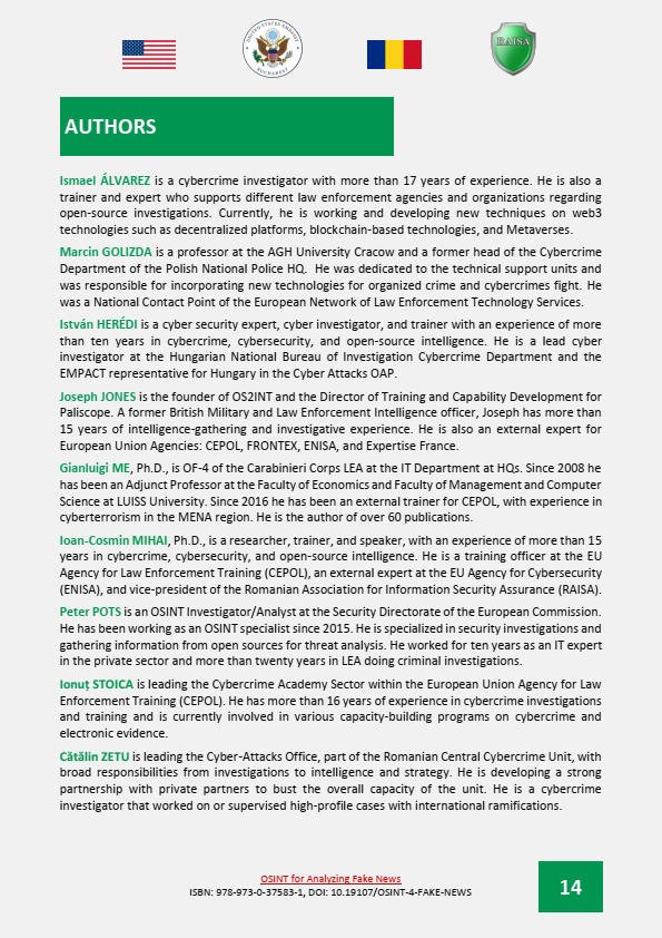 An OSINT guide to analyzing fake news developed by the Romanian Information Security Association (RAISA) with the support of the US Embassy in Romania .