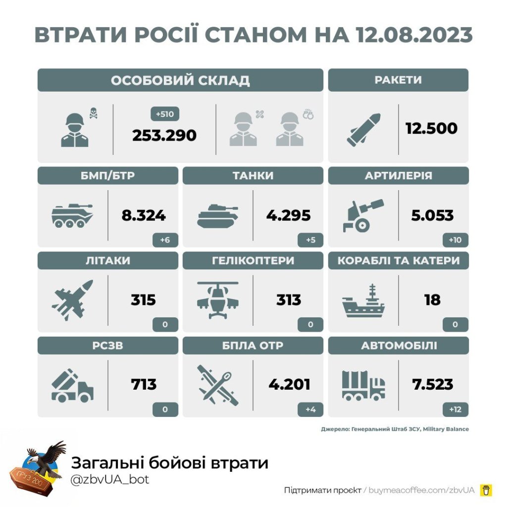 📊 Percentage characteristics of Russia’s losses (12.08.2023):