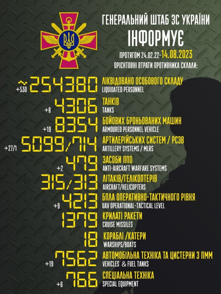 Russia’s losses on 08/14/2023