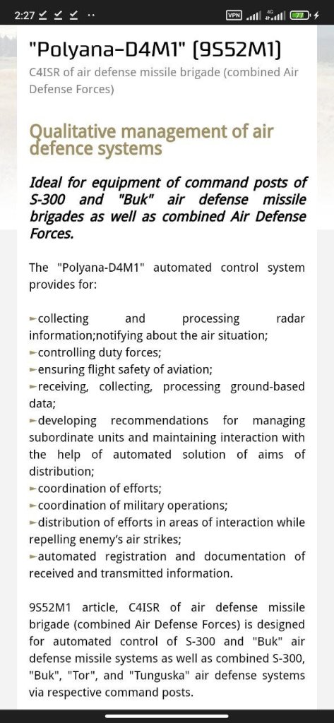 The Russians don’t have the S-300 in the suburbs of Kiev, but they have systems such as the Bok family, Tor, Tangusta, and Pantsir, whose integrated management and control, and the so-called creation of a defense network for them, requires this post unit and Pollyana’s command.