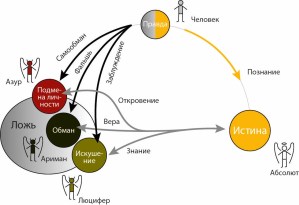 Truth and falsehood are still absolute, objective and unattainable, like differently charged infinite poles. In other words, they are spiritual beings with their own consciousness, which goes far beyond the ordinary human consciousness. These essences constantly oppose each other and enter into a dialectical confrontation: the absolute Truth as a light essence of the highest order is in polar confrontation with the absolute Falsehood as a dark, but also powerful essence. In the unity and permanent struggle of these opposites, our world is realized. It is impossible to comprehend this at the present stage of development of human consciousness. However, it is within the power of a person to exercise free self-determination, with whom does he want to move through life from birth to death: with the Heavenly Father, or with the Evil Adversary?
