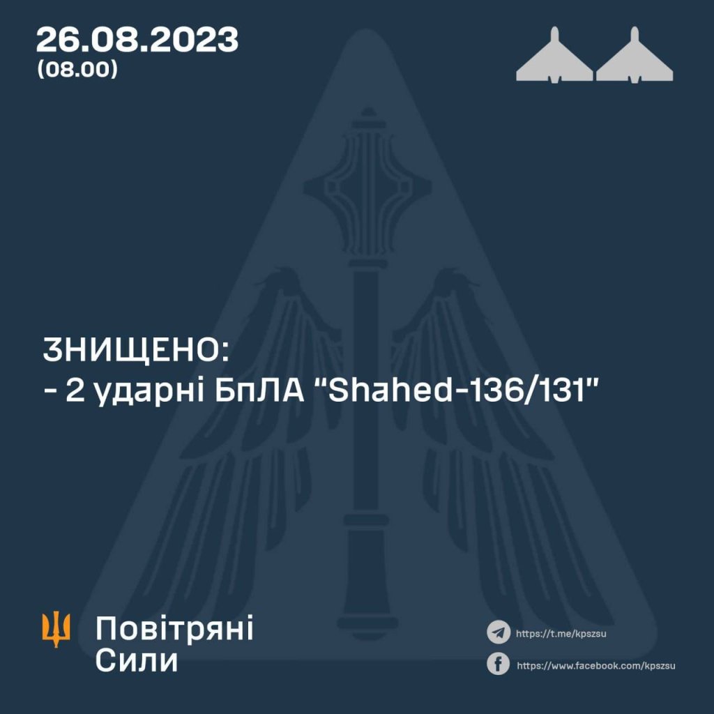 On the evening of August 25, 2023, in the midst of numerous MiG-31K takeoffs, the enemy also used “Shahed-136/131” UAVs from the southeast.