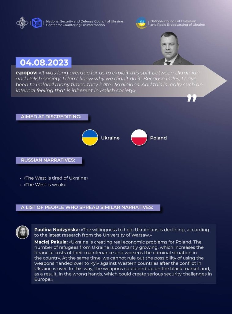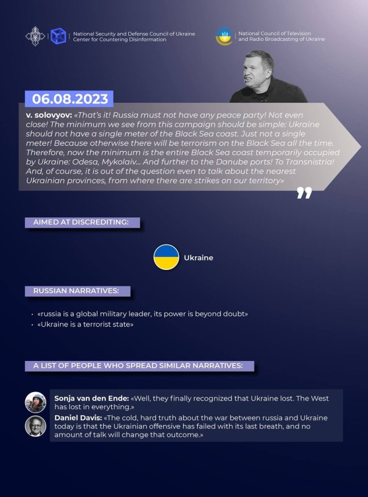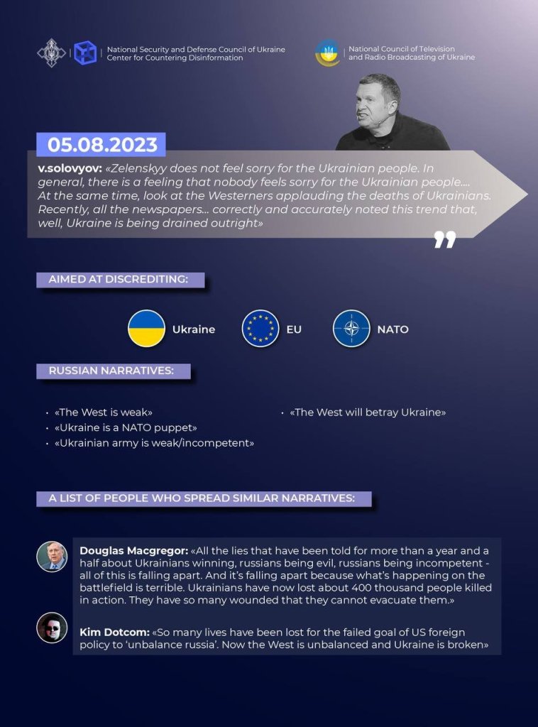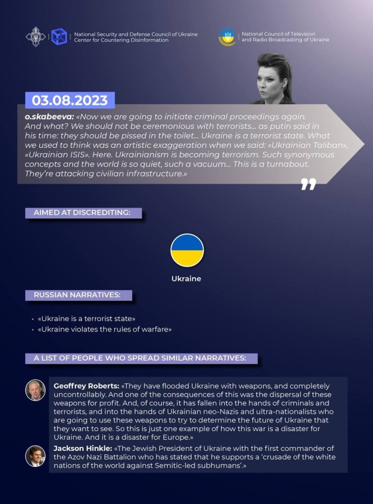 The Center for Countering Disinformation in cooperation with the National Council of Ukraine on Television and Radio Broadcasting, having investigated the russian and international information space, recorded a new series of cases of enemy hate speech directed against Ukraine and its allies