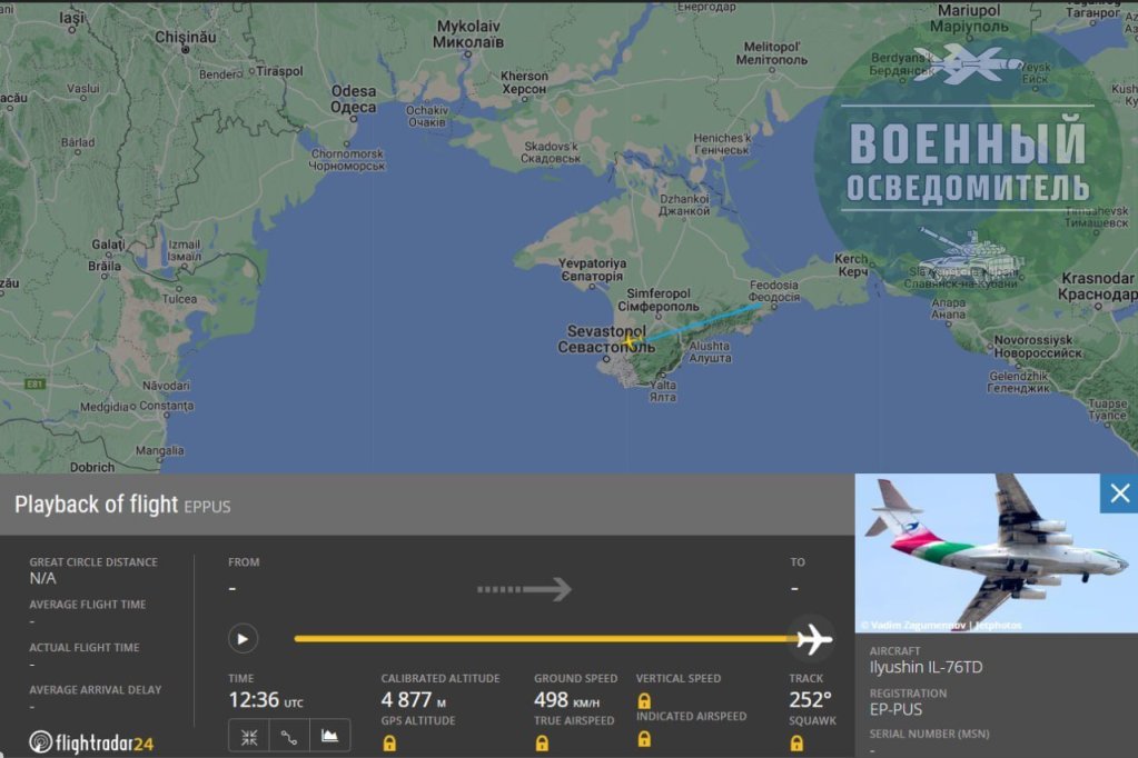 According to the reports, the Iranian Il-76TD EP-PUS, affiliated with the Islamic Revolutionary Guard Corps (IRGC), was indeed in Crimea, staying on the peninsula for about two hours.