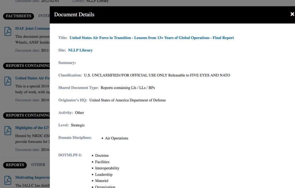 - -NATO Lessons Learned Portal