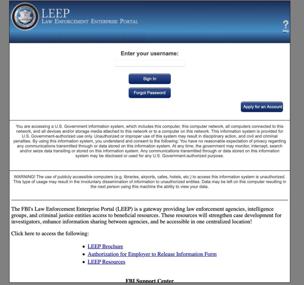 SELLING FBI LEEP ACCOUNT CREDENTIALS
