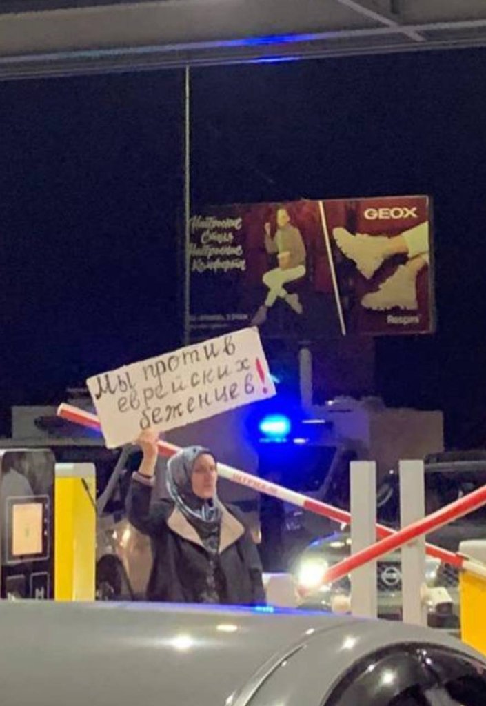 - Those present chanted anti-Semitic slogans and held posters “There is no place for child killers in Dagestan” and “We are against Jewish refugees.” Provocateurs called for photographing the faces of those arriving, asking them whether they condemn Israel, stopping and checking cars, as well as chasing cars and tracking the location of arrivals.
